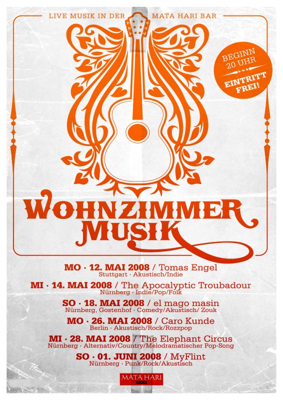 Wohnzimmermusik Konzerte Nr. 59 + 60 - laut und leise - für jeden was dabei! Wohnzimmermusik laut und schmutzig -> HEUTE!!! Wohnzimmermusik leise und schön -> Montag Alle Termine und mehr Info zur Wohnzimmermusik hier |